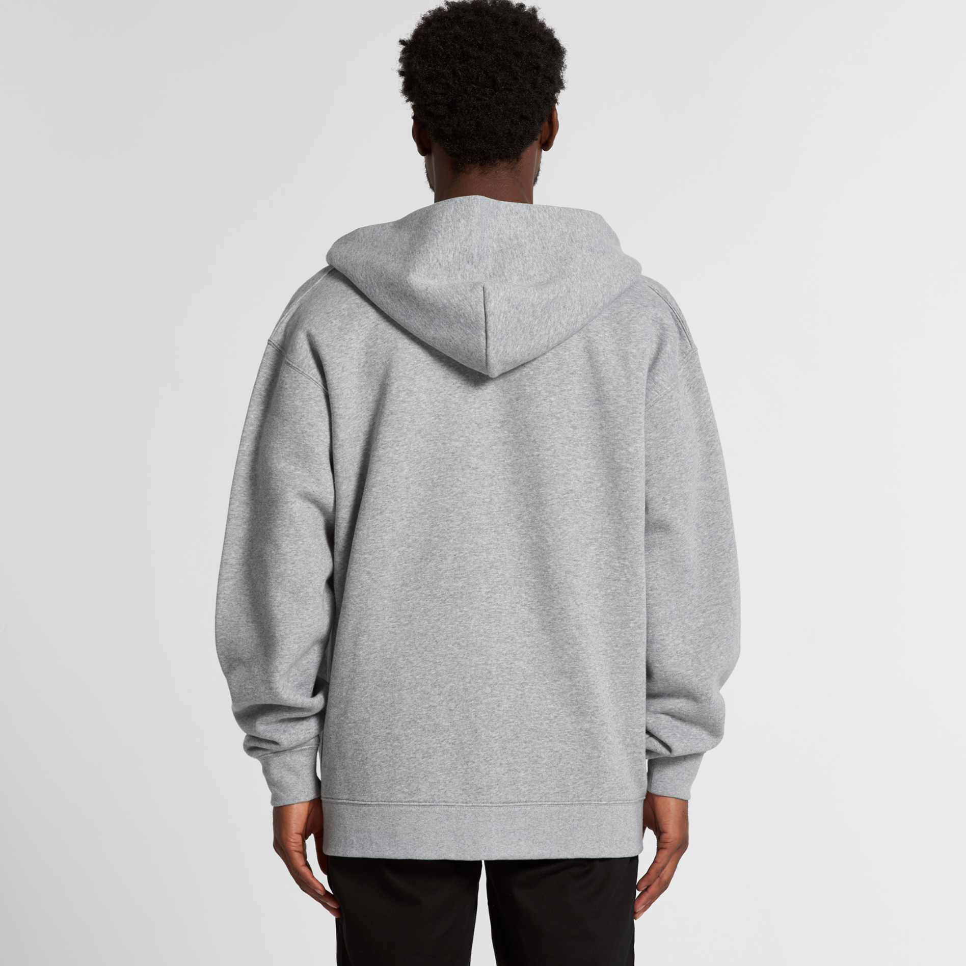 Zip hood, drop shoulder, kangaroo pocket,