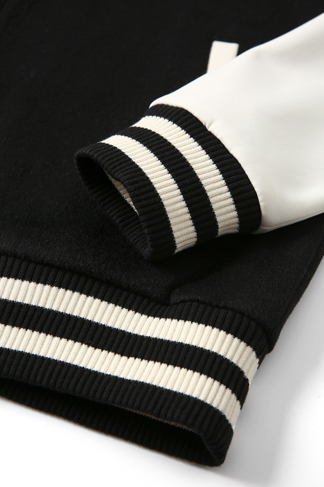 • Thick Ribbing on neck, wrist and hem